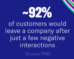 In fact, 92% would leave after just a few of them – and so with a churn rate like that, the cost of a bad experience could be a huge chunk of revenue.