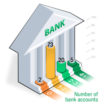Consumers are comfortable ‘mixing and matching’ products and services nowadays, including developing relationships with multiple banking providers simultaneously. Our research found that 93% of consumers use 1-3 banks, with 5% using four or more.